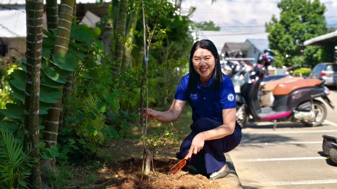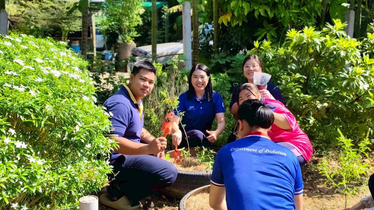 และพร้อมใจกันบำรุงรักษาต้นไม้ด้วยการพรวนดิน ใส่ปุ๋ย กำจัดวัชพืช ตัดแต่งกิ่งไม้และรดน้ำต้นไม้ในพื้นที่ของสำนักงานฯ