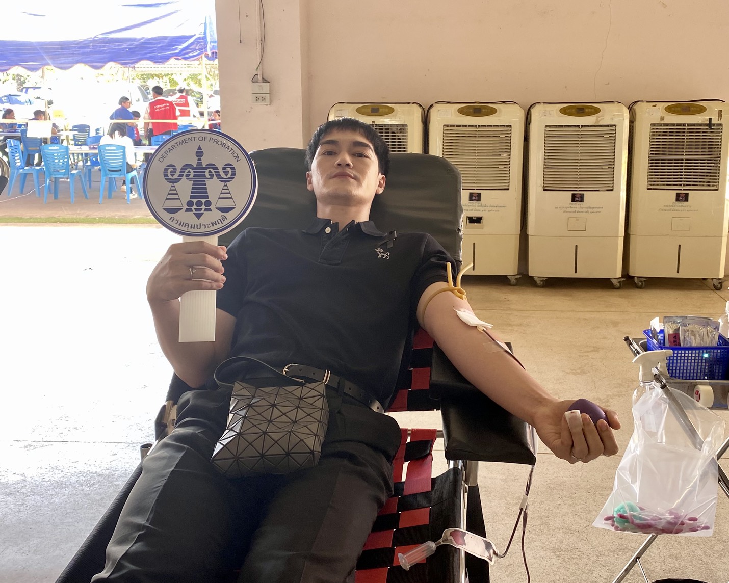 กรมคุมประพฤติ กระทรวงยุติธรรม โดยสำนักงานคุมประพฤติจังหวัดเชียงใหม่ สาขาฝาง วันจันทร์ ที่ 27 ตุลาคม 2568 เวลา 10.00 นาฬิกา นางพุทธิชาต ดอกไม้ไฟ ผู้อำนวยการสำนักงานคุมประพฤติจังหวัดเชียงใหม่ สาขาฝาง มอบหมายให้ นายฉัตรชนก บุญทรงสันติกุล พนักงานคุมประพฤติปฏิบัติการ พร้อมพนักงานเจ้าหน้าที่สำนักงานฯ และผู้ถูกคุมความประพฤติ ร่วมกิจกรรมบริจาคโลหิตของภาคบริการโลหิตที่ 10 เหล่ากาชาดจังหวัดเชียงใหม่ และกิ่งกาชาดอำเภอฝาง