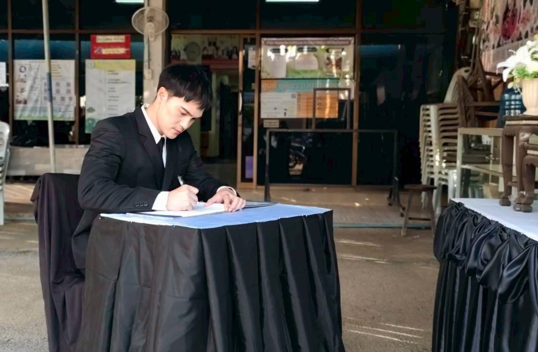 ลงนามถวายความอาลัยและยืนสงบนิ่ง เบื้องหน้าพระบรมฉายาลักษณ์