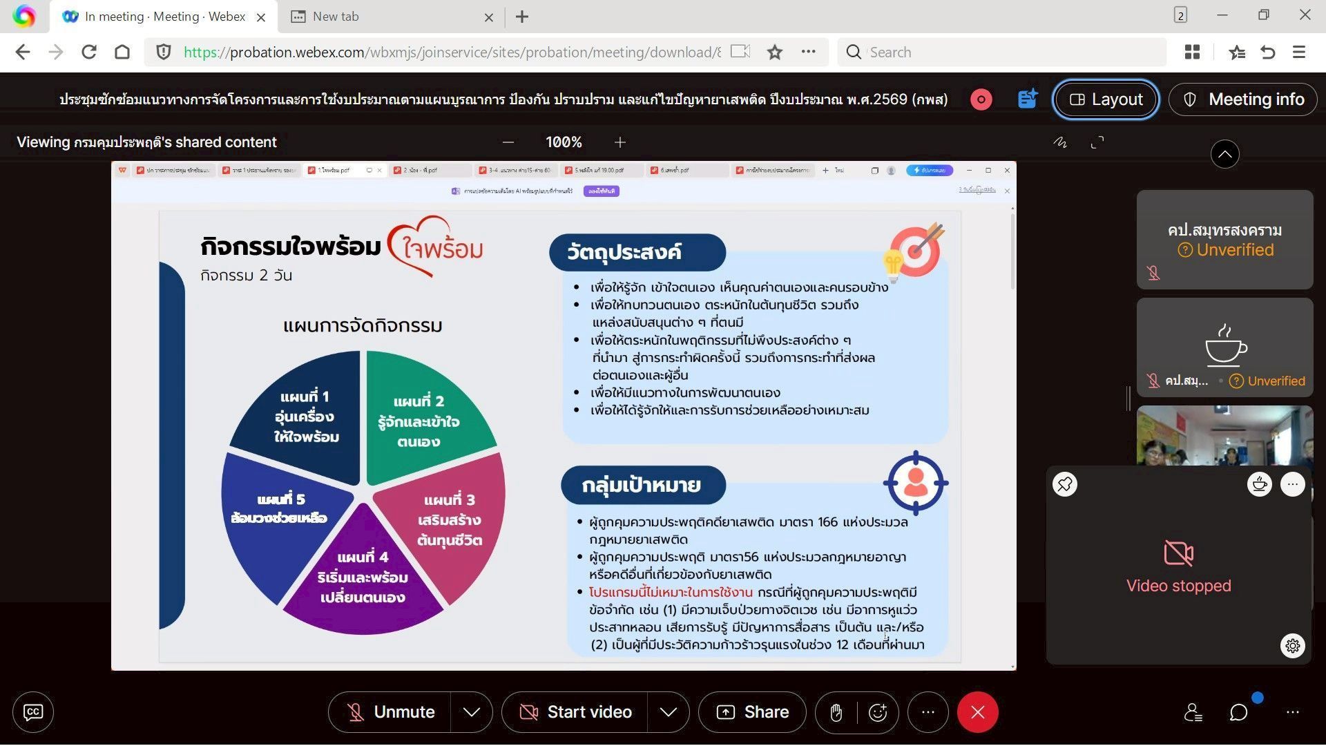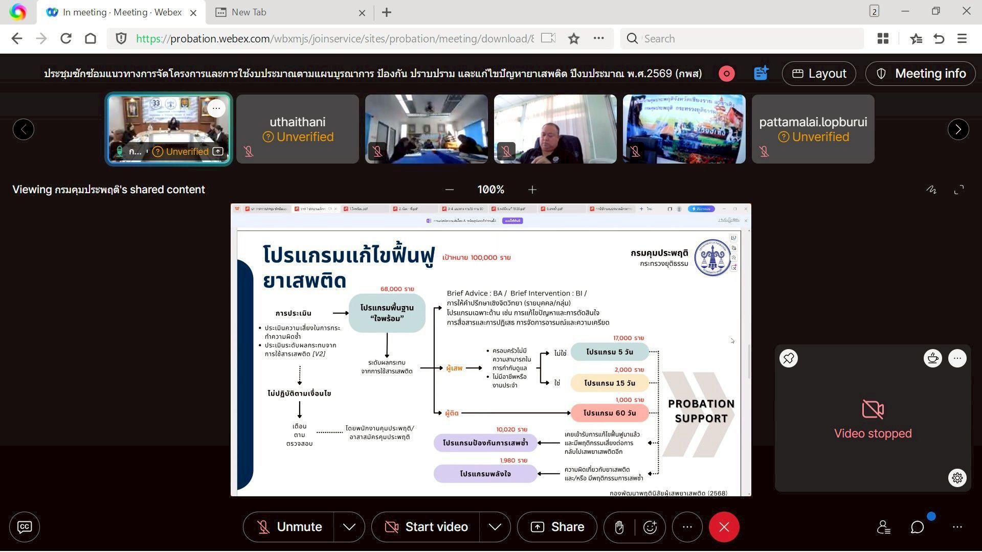 4 พฤศจิกายน 2568 สำนักงานคุมประพฤติจังหวัดเชียงใหม่ สาขาฝาง ร่วมการประชุมซักซ้อมแนวทางการจัดโครงการและการใช้งบประมาณตามแผนบูรณาการ ป้องกัน ปราบปราม และแก้ไขปัญหายาเสพติด ปีงบประมาณ พ.ศ.2569 (กพส) ทางออนไลน์