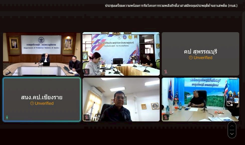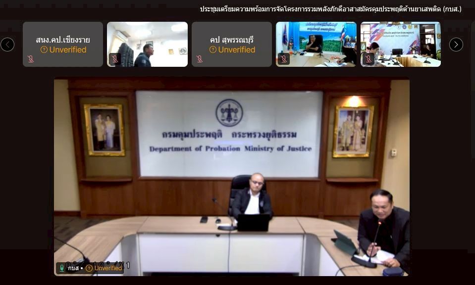 27 พฤศจิกายน 2568 สำนักงานคุมประพฤติจังหวัดเชียงใหม่ สาขาฝาง ร่วมประชุมเตรียมความพร้อมการจัดโครงการรวมพลังภักดีอาสาสมัครคุมประพฤติต้านยาเสพติด เพื่อเตรียมความพร้อมการจัดโครงการรวมพลัง ภักดีอาสาสมัครคุมประพฤติต้านยาเสพติด ประจำปีงบประมาณ 2569 ทางออนไลน์