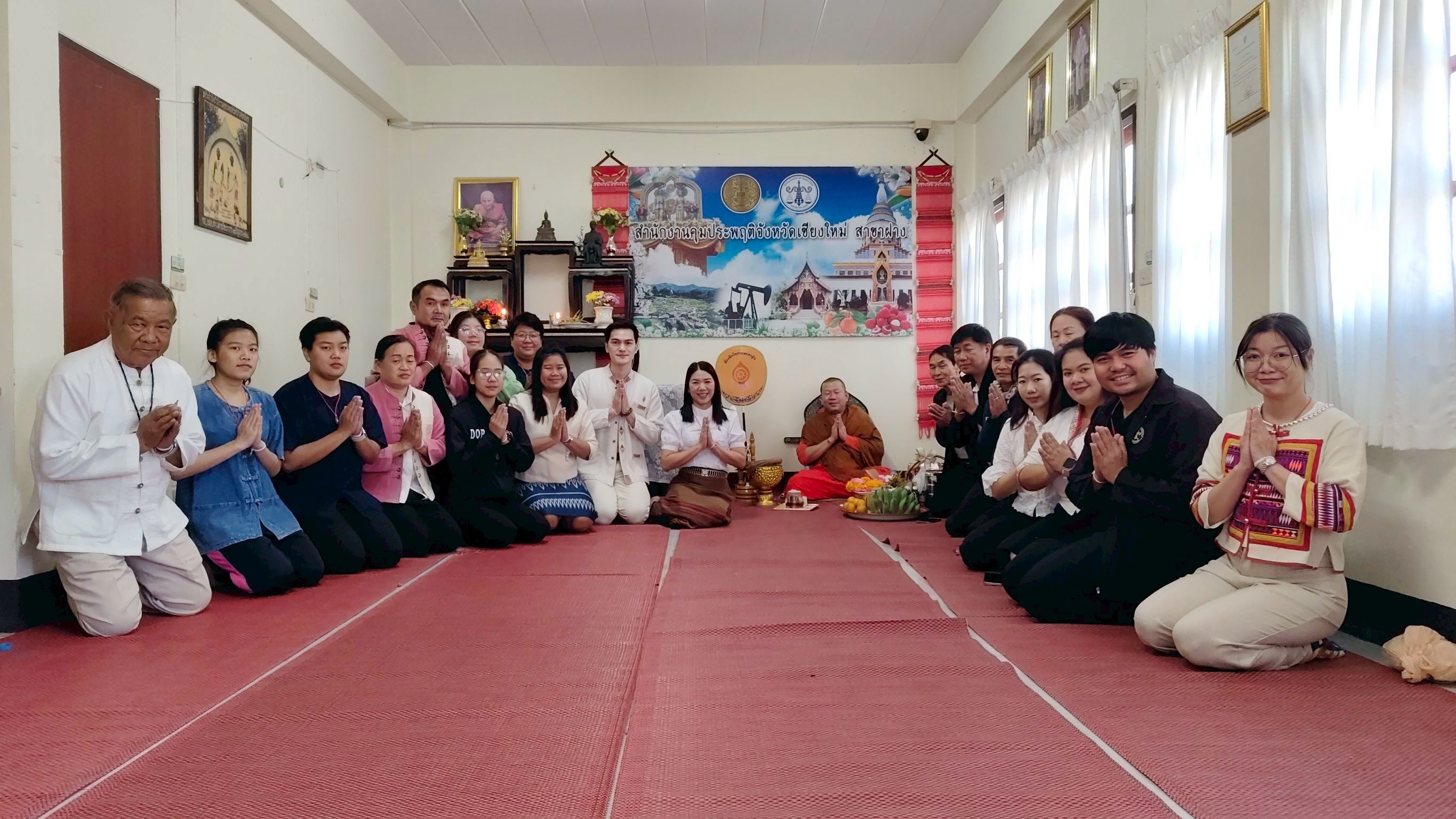 9 มกราคม 2569 สำนักงานคุมประพฤติจังหวัดเชียงใหม่ สาขาฝาง จัดกิจกรรมทำบุญ ต้อนรับศักราชใหม่ กรมคุมประพฤติ กระทรวงยุติธรรม โดยสำนักงานคุมประพฤติจังหวัดเชียงใหม่ สาขาฝาง วันที่ 9 มกราคม 2569 09.00 นาฬิกา นำโดย นางพุทธิชาต ดอกไม้ไฟ ผู้อำนวยการสำนักงานคุมประพฤติจังหวัดเชียงใหม่ สาขาฝาง จัดกิจกรรมทำบุญ เนื่องในโอกาสวันขึ้นปีใหม่ พ.ศ. 2569