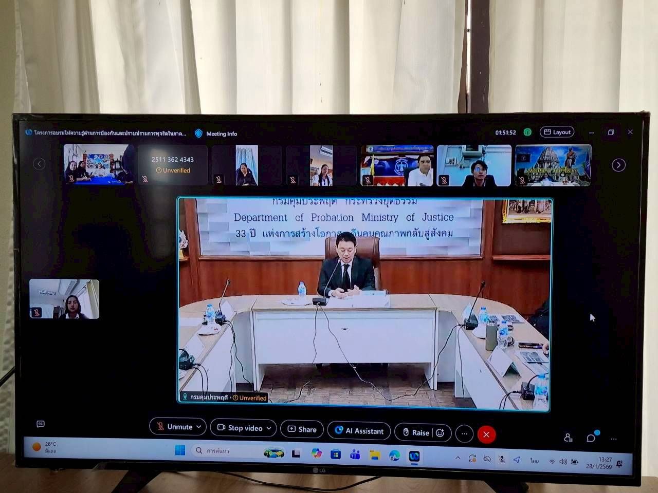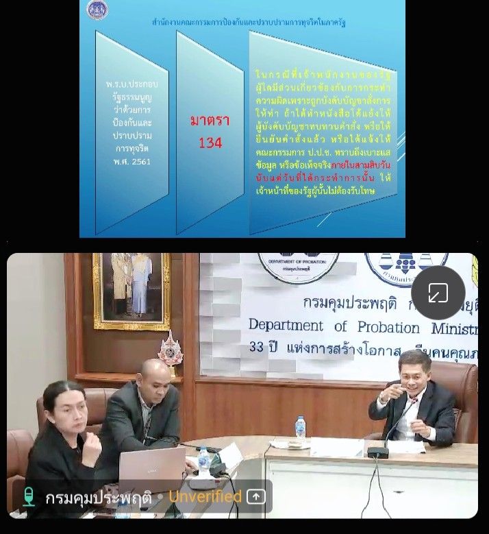 และการจัดการผลประโยชน์ทับซ้อน ผ่านระบบออนไลน์ ทางโปรแกรม Cisco Webex Meetings ของกรมคุมประพฤติ โดยมี นายสิทธิ สุธีวงศ์ รองอธิบดีกรมคุมประพฤติ